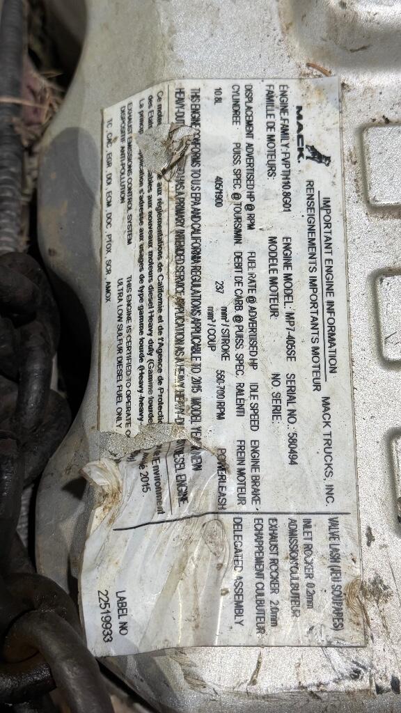 2016 MACK MP7 Engine Assembly